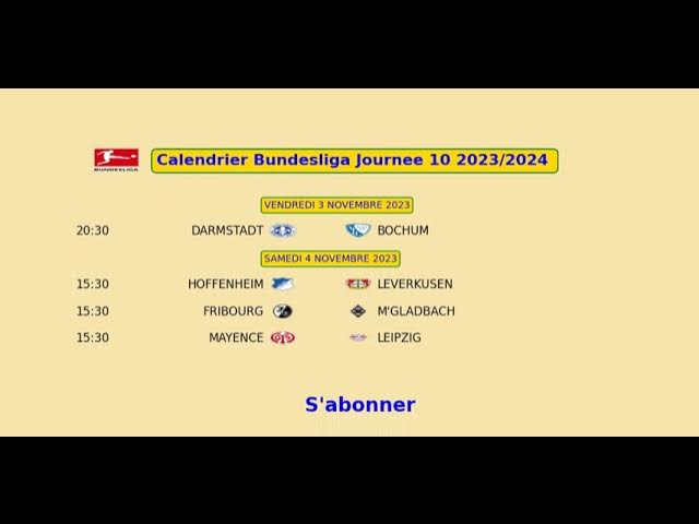 RESULTATS BUNDESLIGA JOURNEE 10 2023/2024 YouTube